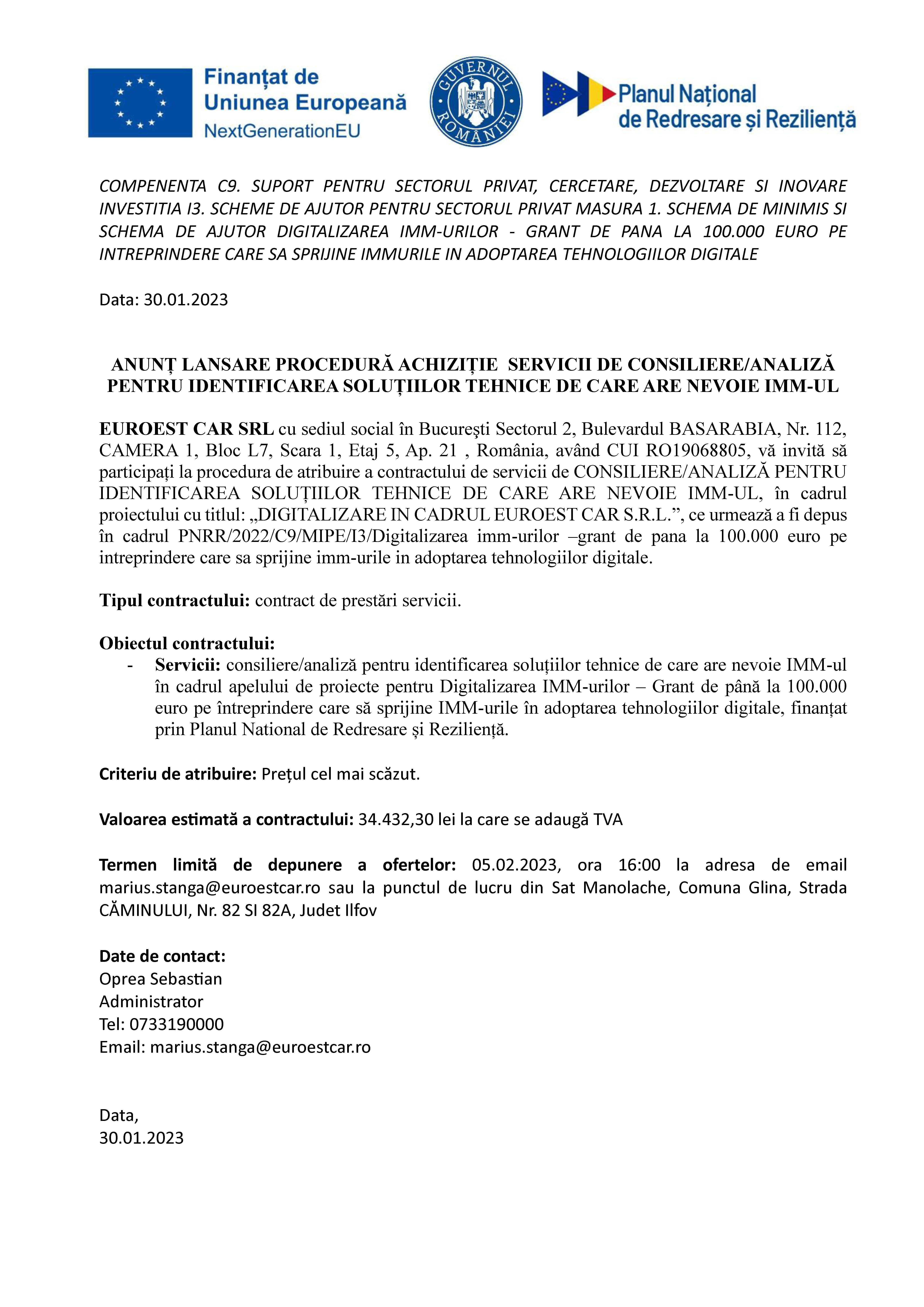 „DIGITALIZARE ÎN CADRUL EUROEST CAR S.R.L.”, ce urmează a fi depus în cadrul